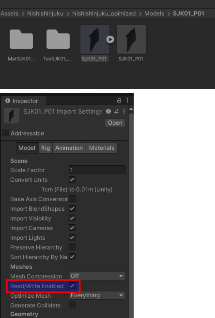 Read/Write Enabledcheckbox in mesh settings.Readable objects