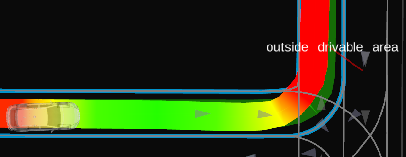 To debug the issue, the maximum drivable area boundary can be visualized.