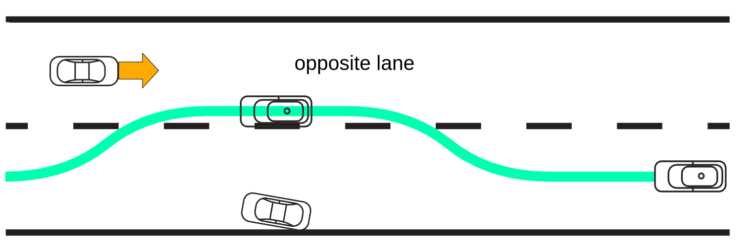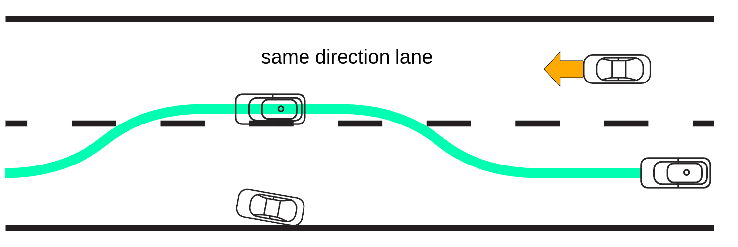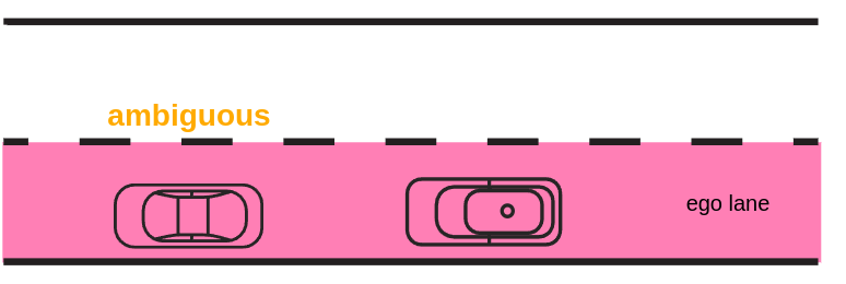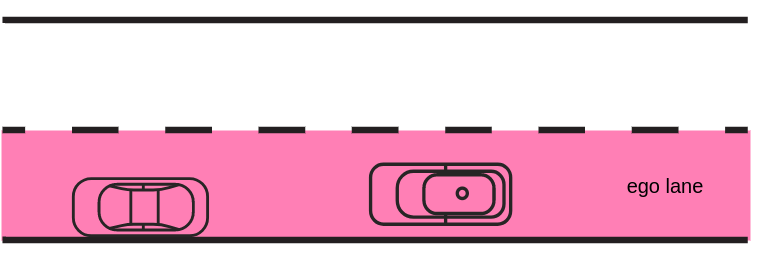 | Vehicle is on ego lane. There are adjacent lanes for both sides. | ![]() |