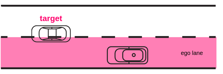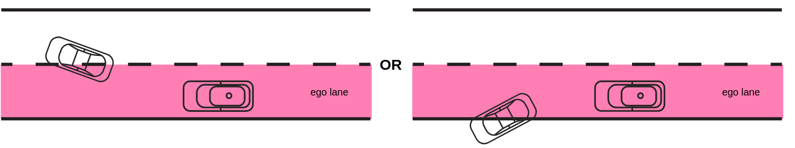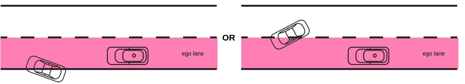 | Vehicle is merging into ego lane from other lane. Most of its footprint is on ego lane. | ![]() |