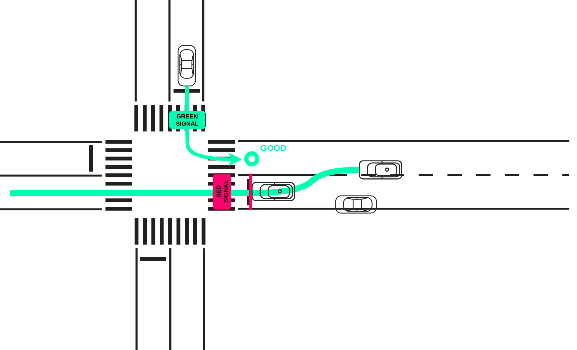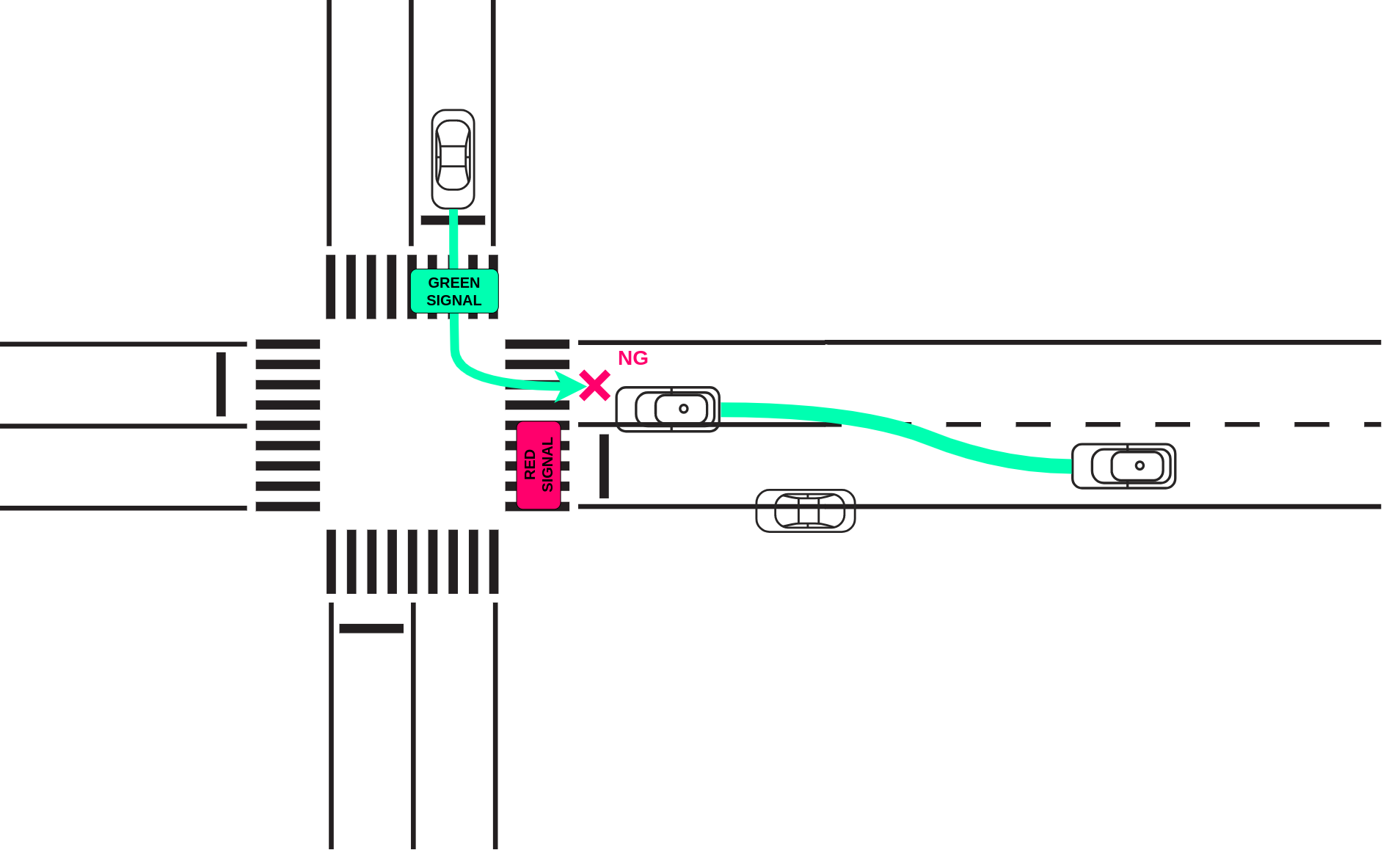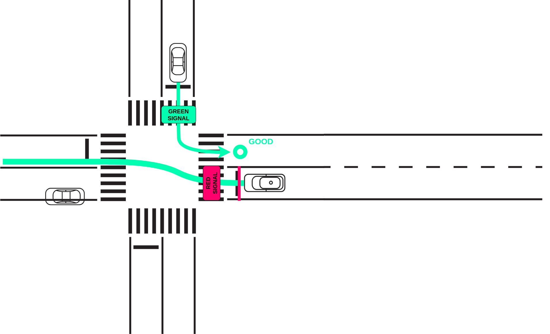 | Vehicle does not appear to be parked and is stopped in front of a crosswalk or traffic light. | ![]() |