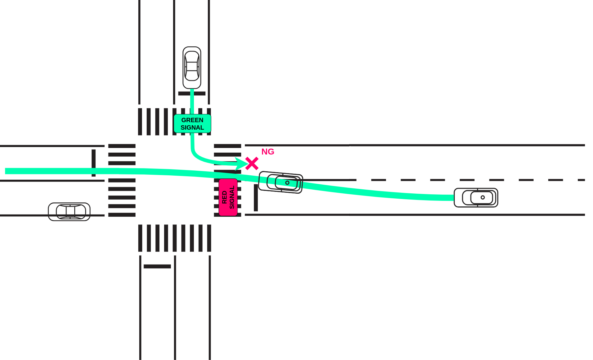 | Is the distance between the object and crosswalk light along the path longer than threshold? | Car, Truck, Bus, Trailer | Same as above. | It depends on other conditions. |
