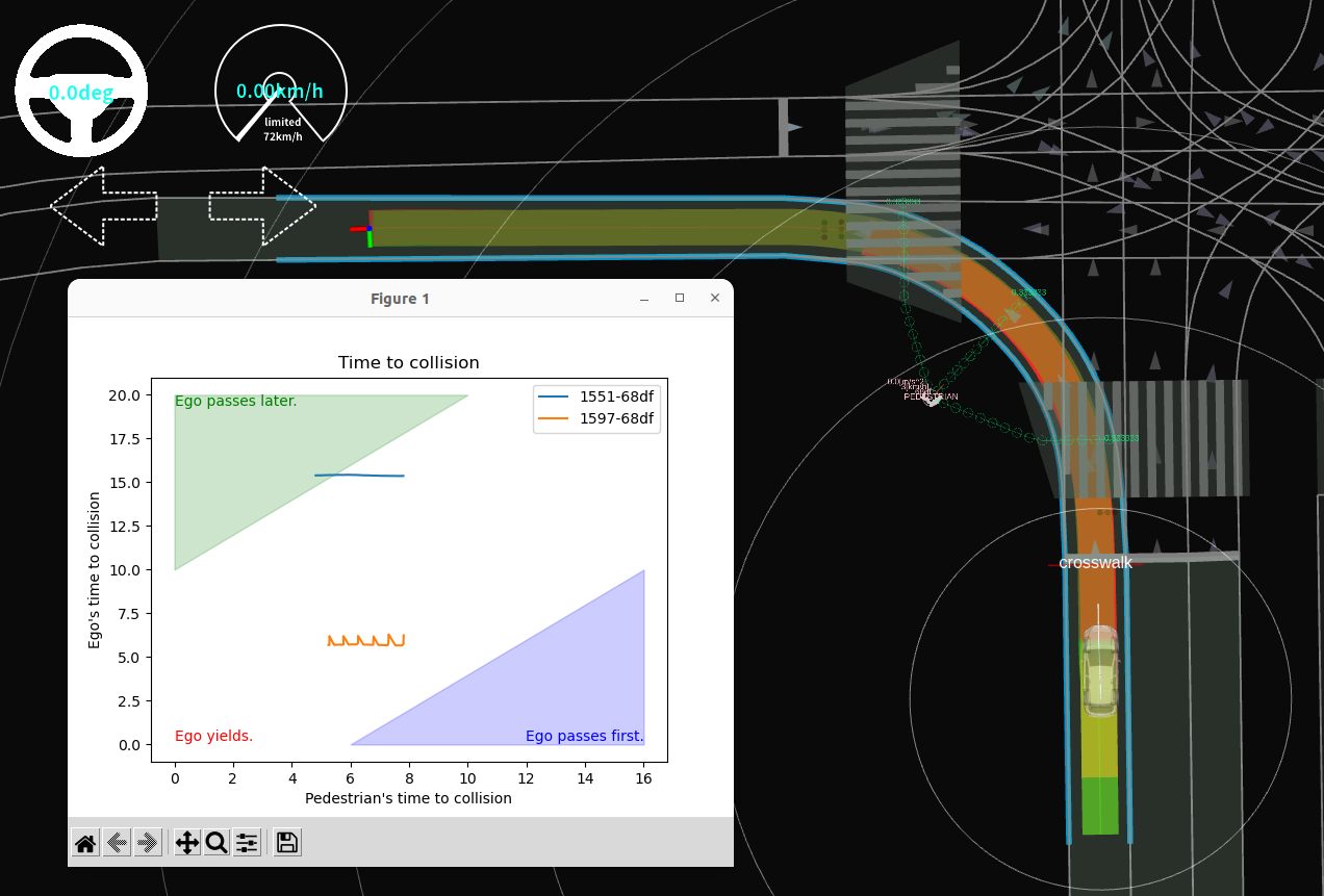 enables you to visualize the following figure of the ego and pedestrian's time to collision.