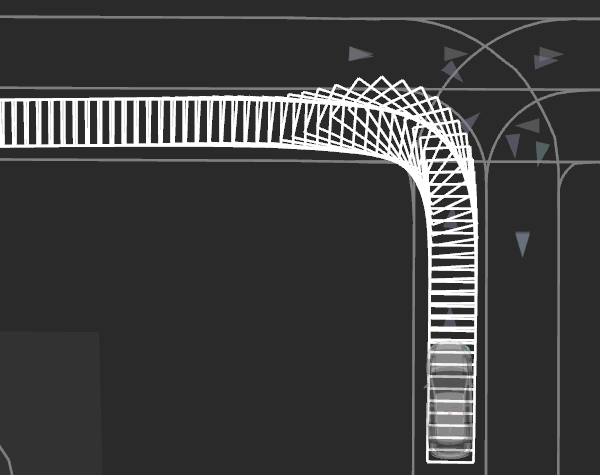 Next, for each trajectory point, we create the corresponding out of lane areas by intersection the other lanelets (from step 2) with the trajectory point footprint (from step 1). Each area is associated with the lanelets overlapped by the area and with the corresponding ego trajectory point.