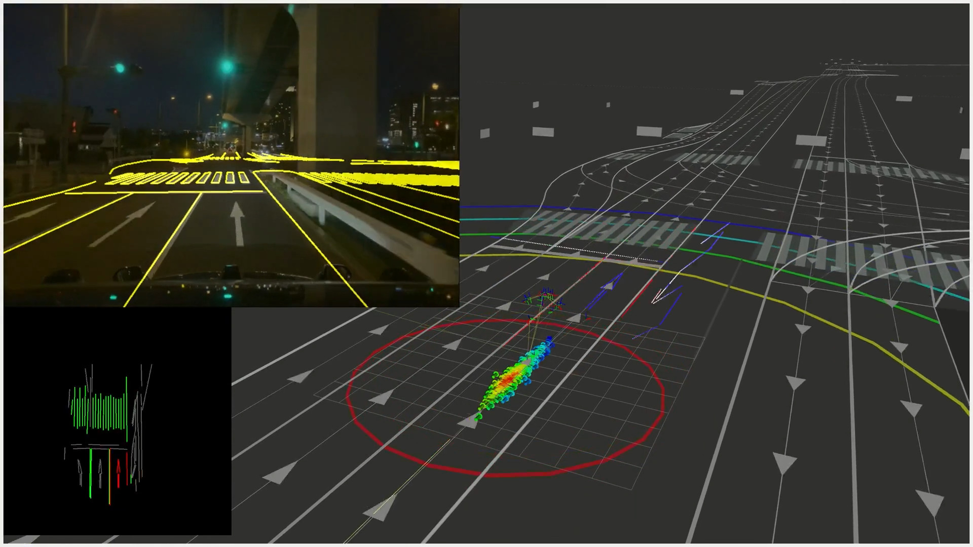 YabLoc is vision-based localization with vector map. https://youtu.be/Eaf6r_BNFfk