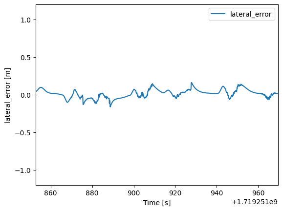 lateral_error_visualize(dir_name=rosbag_nominal,ylim=[-1.2,1.2])