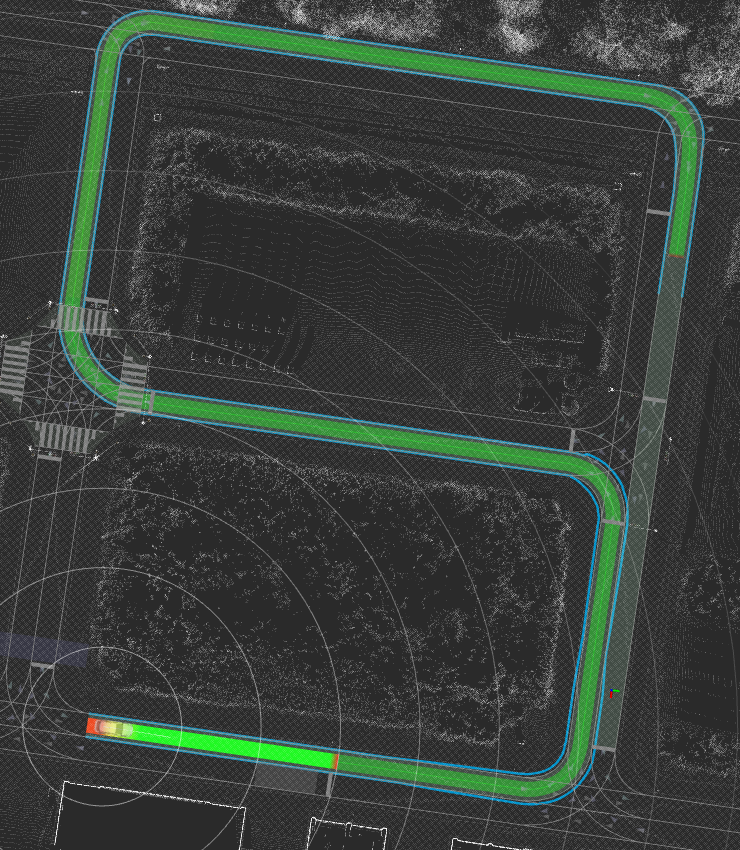 To perform a control test on autoware with the nominal model before training, make sure that trained_model_parameter:control_application:use_trained_model in trained_model_param.yaml is false and launch autoware in the manner described in "Trajectory following control based on iLQR/MPPI". This time, the following route will be used for the test: