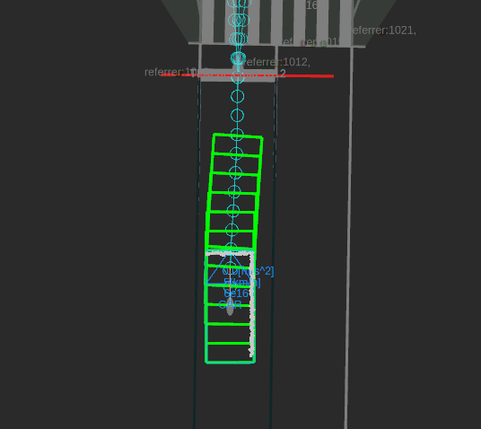 In the debug visualization, the out of lane area polygon is connected to the corresponding trajectory point by a line.