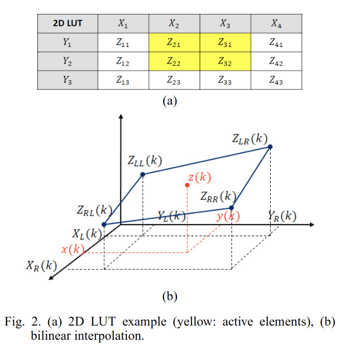 Advantage : No data is wasted because updates are performed on the 4 grids around the data with appropriate weighting. Disadvantage : Accuracy may be degraded due to extreme bias of the data. For example, if data \(z(k)\) is biased near \(Z_{RR}\) in Fig. 2, updating is performed at the four surrounding points ( \(Z_{RR}\), \(Z_{RL}\), \(Z_{LR}\), and \(Z_{LL}\)), but accuracy at \(Z_{LL}\) is not expected.